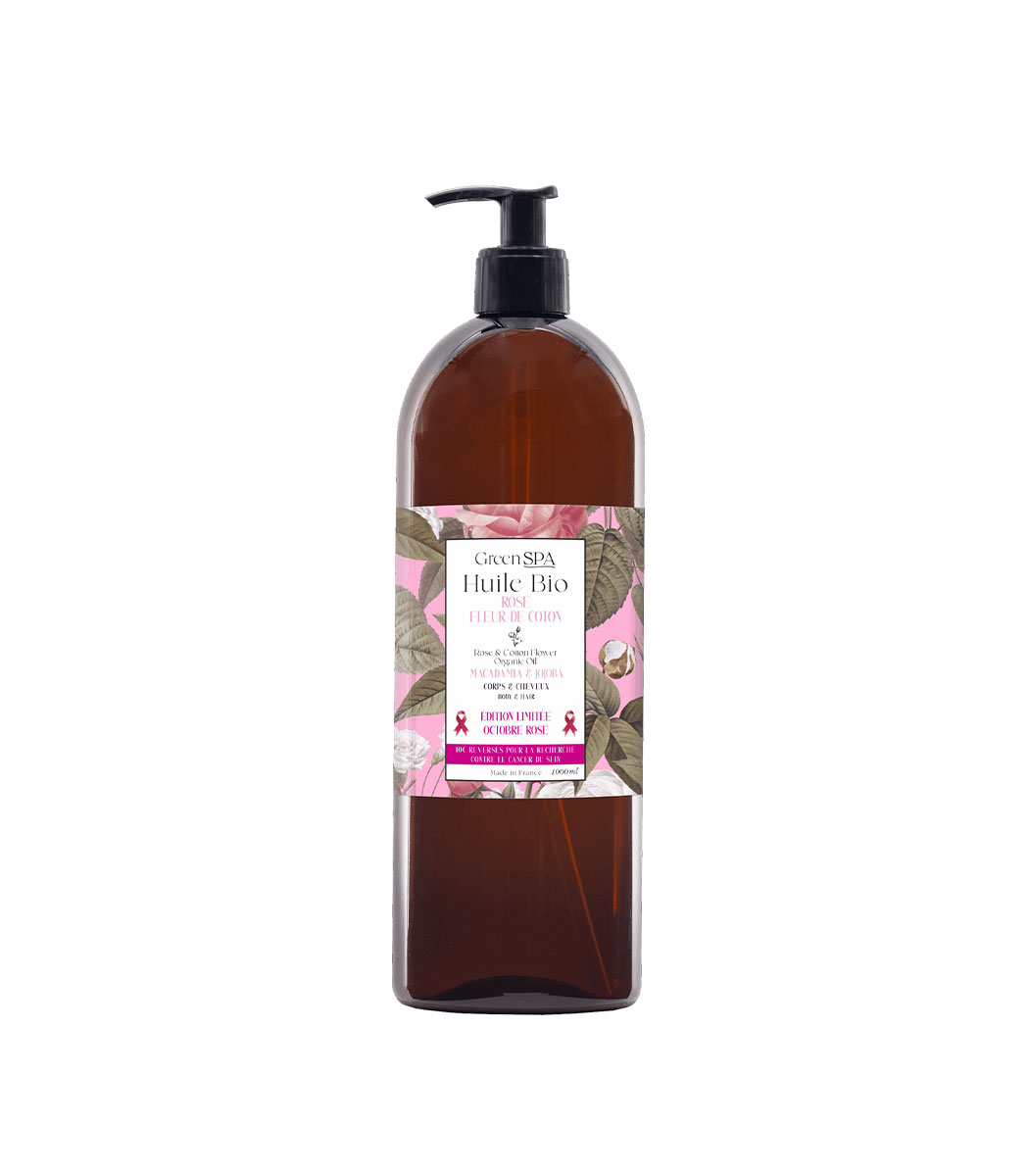 Huile de massage BIO Rose & Fleur de coton – Édition limité Octobre Rose – 1L