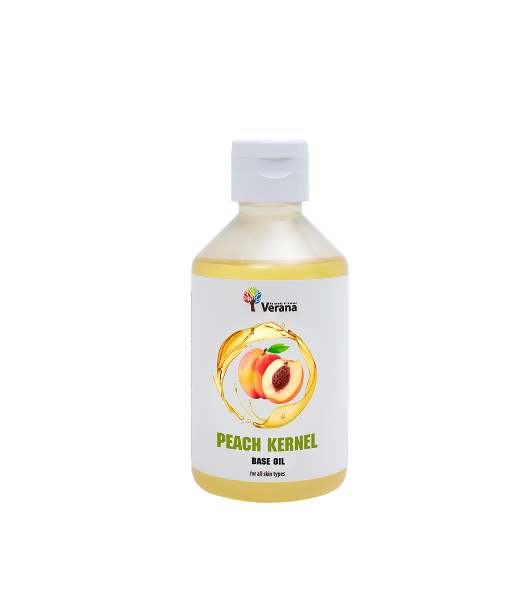 Huile de massage naturelle Noyau de pêche Verana, 100% végétale. Riche en vitamines A, B, C, E et acides gras essentiels, cette huile nourrit intensément la peau tout en facilitant le glissement parfait pour tous vos massages professionnels. Sa texture soyeuse et non grasse convient à tous les types de peaux.