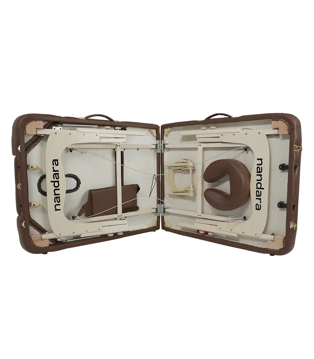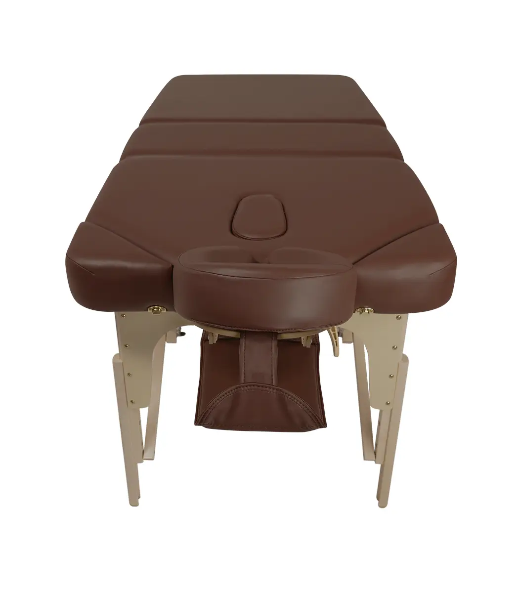 La table de massage pliante bois – AMARA SUPREME avec dossier relevable, fabriquée en bois de hêtre européen et pesant 18,2 kg, offre une stabilité exceptionnelle.